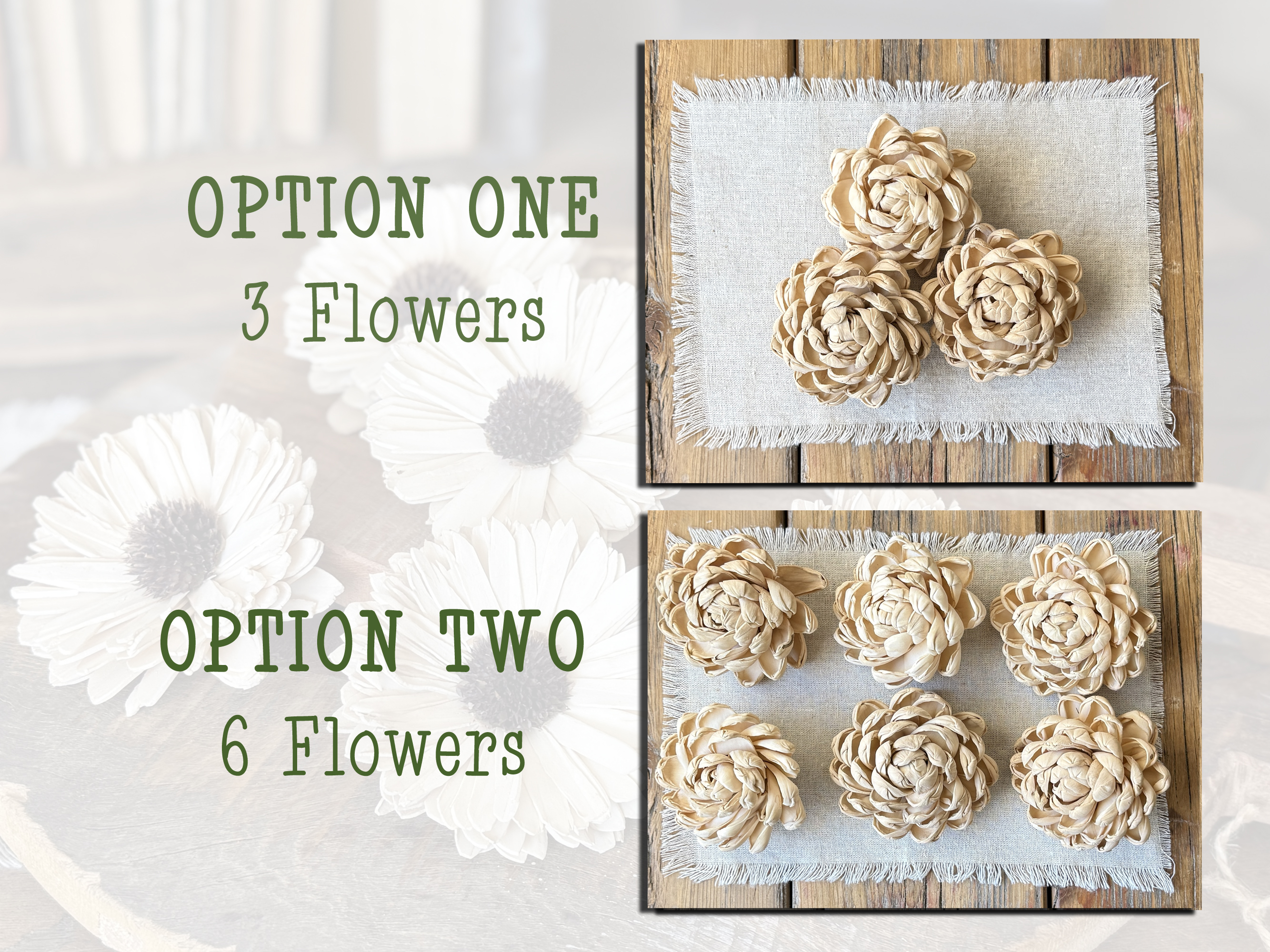 Neutral Sola Wood Flower Blossoms – Natural Bowl Filler for Rustic & Romantic Styling