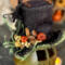 Autumn Top Hat: Adding to his charm, Frankie is wearing a beautifully crafted autumn top hat inspired by the Mad Hatter's whimsy. The hat features textures and foliage that capture the essence of fall. Built-in wires allow for adjusting the brim and point of the hat, giving each pumpkin a unique look.