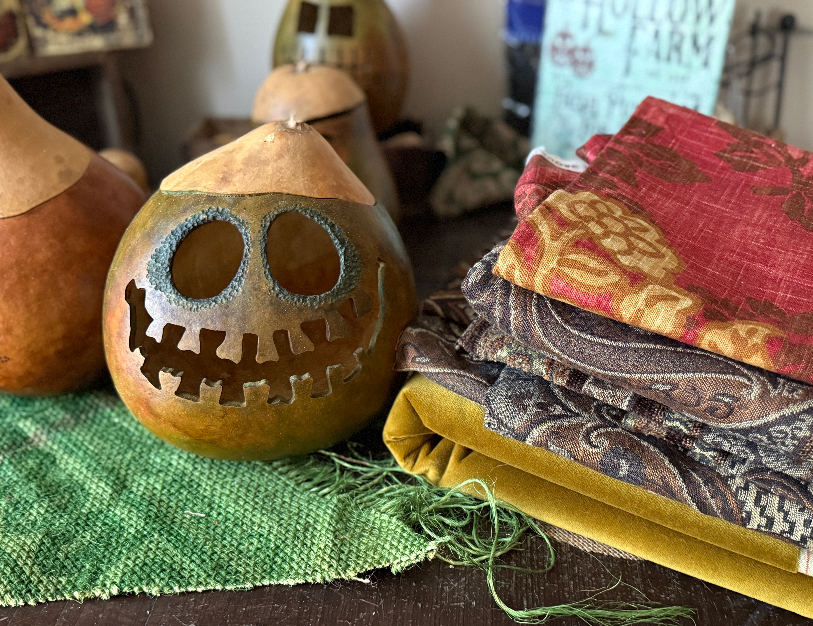 I use the gourds to create whimsical fall pumpkin characters with a ton of personality. I also enjoy turning the gourds into decorative bowls, vases, and vessels. Each gourd shape is unique, so each gourd piece is a one-of-a-kind!