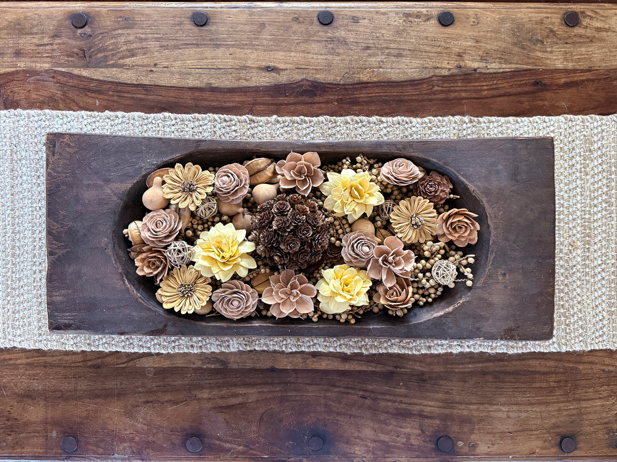 Designed for effortless styling, these faux flowers are perfect for wooden dough bowls, trays, vessels, and layered table centerpieces.