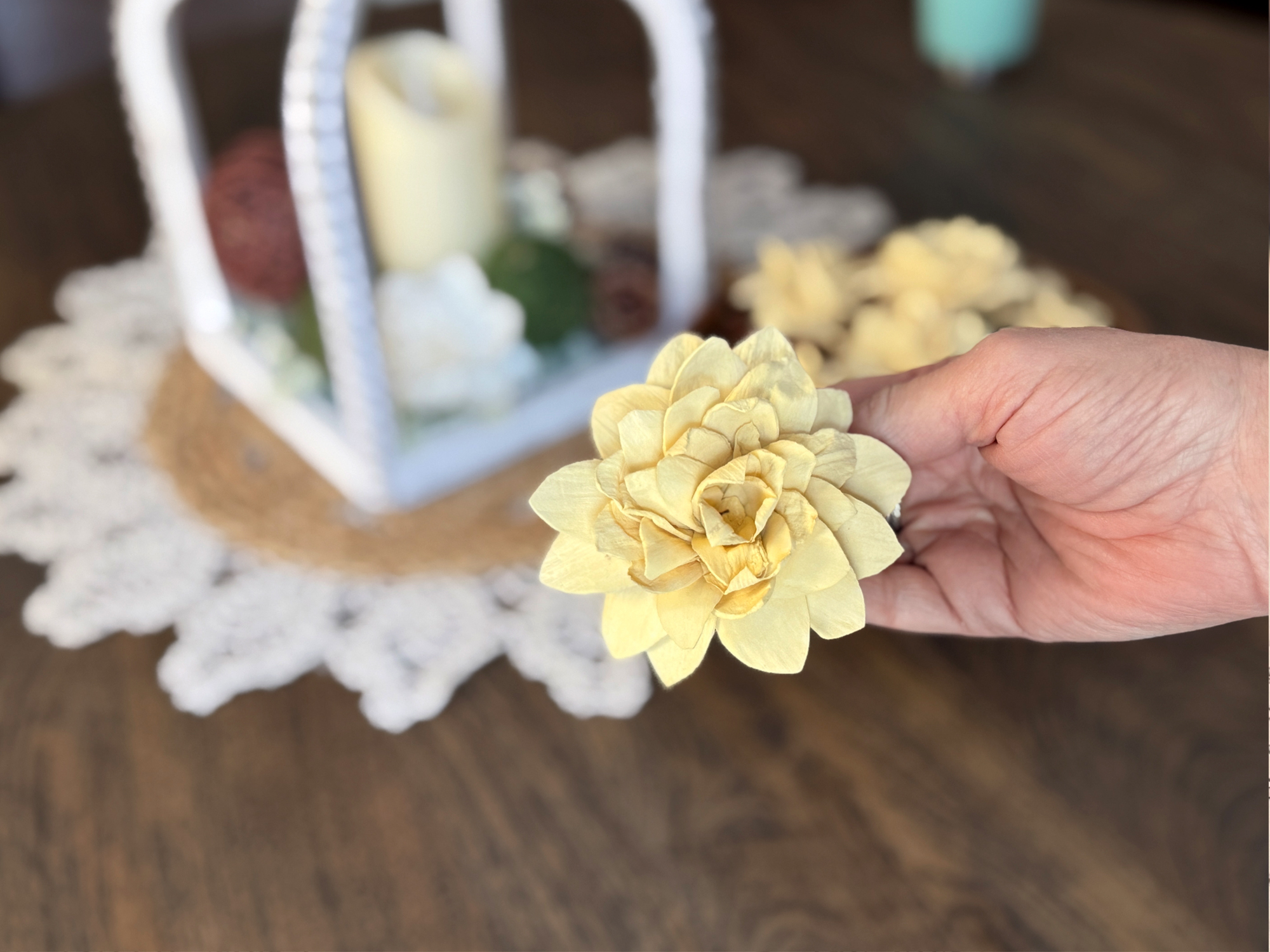 Dusty Soft Yellow Sola Wood Flower – Romantic Summer Bowl Filler & Table Decor