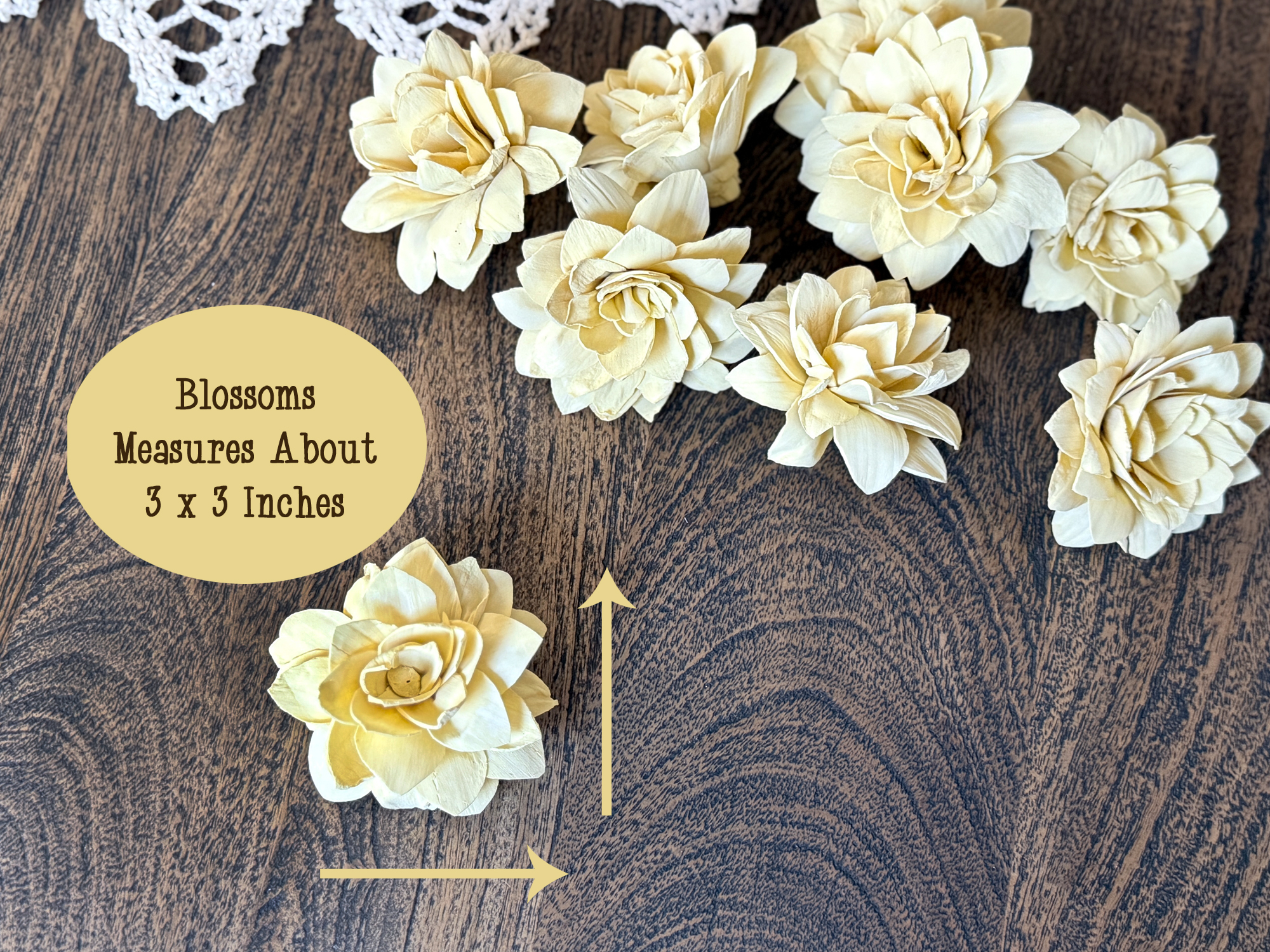 Each blossom is made from natural sola wood, known for its lightweight feel and beautifully detailed petal structure.