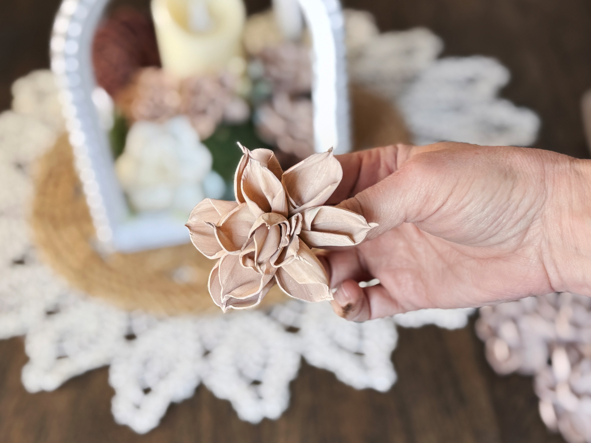Whether displayed individually on a tray or layered into a full dough bowl centerpiece, these blooms add softness without overpowering your décor.
