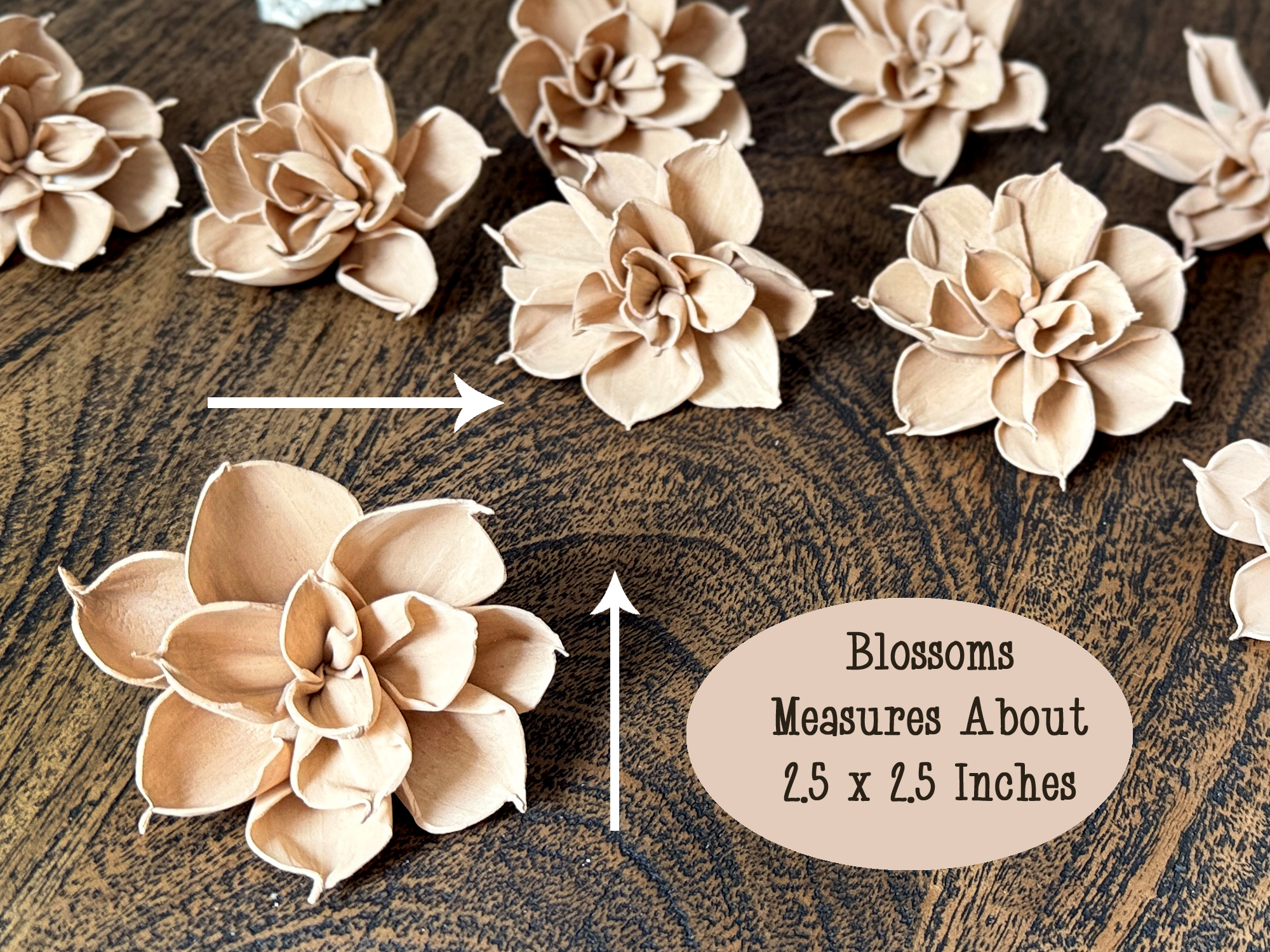 Each blossom is made from natural sola wood, known for its lightweight feel and beautifully detailed petal structure.